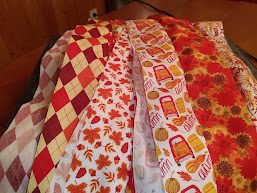 I ordered a “jelly roll,” as it is called, of material. Always be careful when ordering things online, because they always look much bigger and easier than they are in reality. The jelly roll had as beautiful bright colors as you can imagine for autumn patterns, which is my favorite season. However, the strips were much narrower than I expected, which could pose a problem. However, I decided to go ahead and meet the challenge.